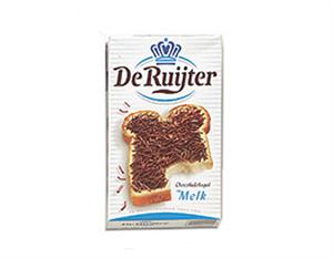 De Ruijter Milk Chocolate Sprinkle Hail (De Ruitjer Chocoladehagel Melk) in 14oz box. De Ruijter Milk Chocolate Sprinkle Hail makes the best topping for bread, dairy products, desserts and more. A well-known name in the Netherlands, De Ruijter thinks quality is crucial for Hagelslag and produces its chocolate sprinkles and flakes using the highest quality chocolate. De Ruijter manufactures its products carefully and appropriately. Product of Netherlands.